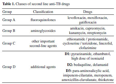 The second-line drugs (Table 1) are used for the treatment of rifampicin-resistant TB and MDR-TB and can be classified as fluoroquinolones (Group A), aminoglycosides (Group B), other main agents (Group C) and additional agents (Group D).5