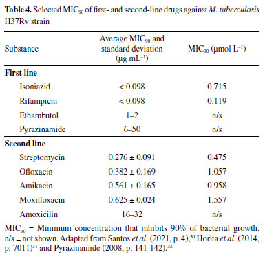![]() Figure 1. Structural formulas of the most used substances for TB treatment