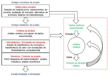 ![]() Figura 1. Fluxograma representando a importância da análise cinética para modelagem do processo pirolítico de biomassas, adaptado de Cai et al.19