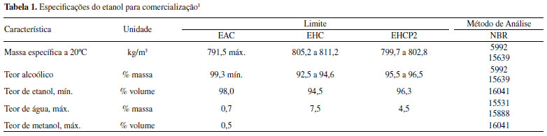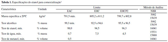 Coordenadoria do curso de Química Industrial, Instituto Federal do Espírito Santo, campus Vila Velha, 29106-010 Vila Velha - ES, Brasil Recebido em: 10/06/2021 *e-mail: ernesto.ferreira@ifes.edu.br Brazilian news media is full of examples about fuels out of the compliances and needs to control fuel quality. This work proposed an analytical validation of a commercial near infrared photometer (Xerloq, Tech Chrom Analytical Instruments, Brazil) able to identify percentage of ethanol in fuels comparing with NBR standards. Four procedures were selected: analysis of ethanol percentage in gasoline type C samples comparing with standard method ABNT 13992; analysis of ethanol percentage in fuel ethanol samples comparing with standard method ABNT 5992; linearity correlation and selectivity of standard solution analysis. Comparisons between the photometer and standards measurements were to determine the accuracy and precision of the device which presented a little variation from the norm (ER < 1.3%, sR < 0.4%). With regard to the test for linearity, Ethanol:water mixtures was analyzed with R-squared larger than 0.999 with RMSEV less than 1%. On selectivity tests, Gasoline:Ethanol:water and Methanol:Ethanol:water mixtures were measured with bias error not exceeding 5% for regulated samples. In conclusion, this fuel analyzer can be used to analyze ethanol content in Brazilian fuels with similar results comparing with classical standard volumetric and glass densimeter analysis and may indicate adulteration gasoline and ethanol samples by anomalous data. INTRODUÇÃO A qualidade dos combustíveis no Brasil é um dos assuntos comentados pela mídia devido a mudanças constantes no preço de mercado internacional e no valor do dólar americano, que coincide também com o aumento das adulterações a fim de se lucrar mesmo em crises econômicas e pandêmicas. A Agência Nacional de Petróleo, Gás Natural e Biocombustíveis, ANP, é a instituição responsável por "proteger os interesses dos consumidores quanto a preço, qualidade e oferta de produtos, bem como especificar a qualidade dos derivados de petróleo, gás natural e seus derivados e dos biocombustíveis",1 e mantém programas de controle de qualidade de combustíveis líquidos e lubrificantes atuantes em todo território nacional e regulamenta as características destes produtos comercializados no Brasil. Atualmente, as especificações do Etanol comercializado são regulamentadas na Resolução ANP Nº 19, de maio de 2015, parte apresentadas na Tabela 1, que define três tipos de Etanol: Anidro Combustível, EAC, Hidratado Combustível, EHC, e Hidratado Combustível Premium, EHCP2.1