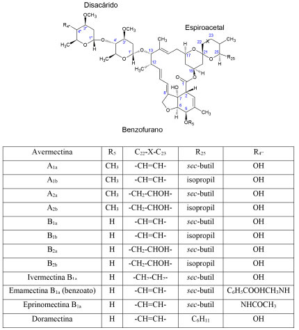 ![]() Figura 1. Estructura química de las avermectinas1