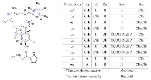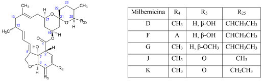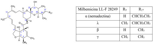 ![]() Figura 3. Estructura química de las milbemicinas de la serie α26