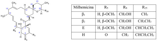 ![]() Figura 4. Estructura química de las milbemicinas de la serie β26
