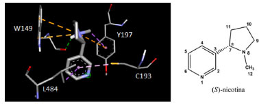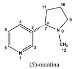 ![]() Esquema 1. Representação esquemática 2D da estrutura química da nicotina em forma de linhas e identificação numérica dos átomos