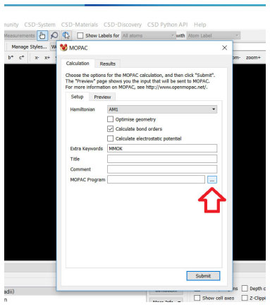 ![]() Figura 4. Iniciar o MOPAC pela interface do Mercury
