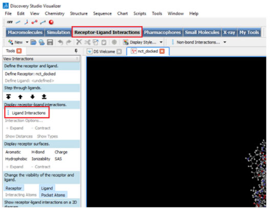 ![]() Figura 11. Localização da ferramenta Ligand interactions