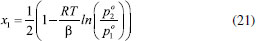 RESULTADOS E DISCUSSÃO As misturas binárias investigadas neste trabalho têm valores tão altos de β quanto 5 kJ mol-1, mostrando um substancial desvio da idealidade, quanto valores tão baixos como 0,6 kJ mol-1, sendo uma solução com pouco desvio da idealidade. Desvios excessivos a ponto de separar duas fases líquidas não foram considerados. Os resultados da análise de formação de azeótropos, segundo os critérios das equações (23) ou (24), estão mostrados na Tabela 1. As misturas que formam azeótropos com seus diagramas P versus X1 estão mostrados na Figura 2.