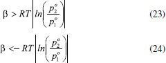 CONCLUSÕES O processo de formação de azeótropos foi analisado do ponto de vista da energia livre de solvatação dos componentes em si mesmos e no outro componente. Esses valores de energia livre de solvatação definem o parâmetro β. As equações (23) e (24) estabelecem os critérios para formação de azeótropos e foram testadas para 10 misturas binárias, funcionando em todos os casos. Essas equações mostram que a formação de azeótropos requerem que a variação de ΔGsolv quando os componentes puros são transferidos para a solução do outro componente devem ser grandes o suficiente (positivo ou negativo) para superar a razão das pressões de vapor dos componentes puros. Colocando de outra forma, quanto maior a diferença de temperatura de ebulição entre os componentes, maior deve ser a diferença de energia livre de solvatação dos componentes imerso no outro componente em relação a sua própria solvatação para formar azeótropo.