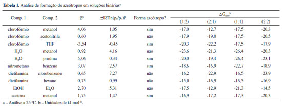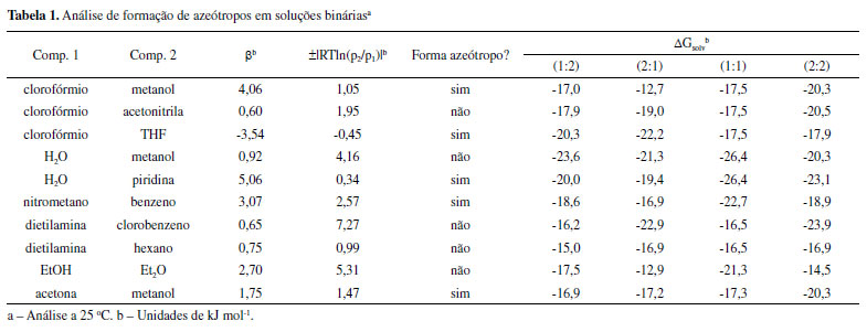 | Formação de azeótropos do ponto de vista da termodinâmica de solvatação Formation of azeotropes from the standpoint of solvation thermodynamics |