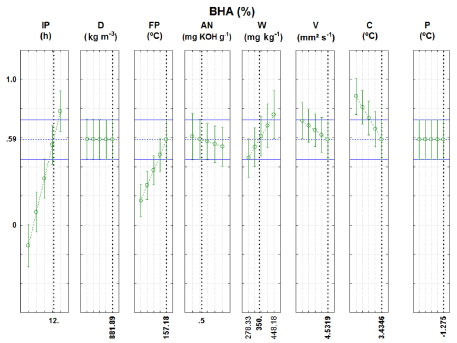 ![]() Figure 5. Biodiesel parameters optimization for BHA