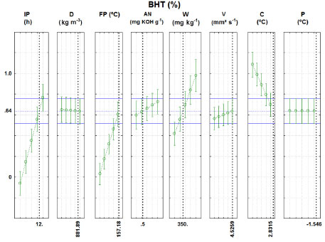 ![]() Figure 6. Biodiesel parameters optimization for BHT