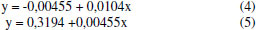 Uma análise da absorvância medida em 582 nm em função do teor de álcool na mistura binária foi efetuada após correção do perfil dos espectros eletrônicos tomando como base em cada segmento a linha base para a mistura com menor porcentagem do álcool. Foram verificados dois segmentos, com correlação linear, que resulta nas curvas indicadas nas Figuras 6S to 7S. O tratamento matemático das curvas resultou nas equações 4 e 5. ![]() Para os estudos nas diferentes marcas de álcool em gel, foi utilizada como referência a massa da solução hidroalcoólica 70% (m/m), usada para a construção das curvas de referência. As soluções aquosas do álcool em gel foram preparadas após determinar a massa da parte líquida do álcool em gel. Um tratamento térmico de uma massa conhecida, do álcool em gel, foi executado e assim pela diferença entre massa inicial do álcool em gel e massa seca foi possível ter conhecimento da massa necessária do álcool em gel para preparar a solução estoque. A referida massa foi solubilizada em água bidestilada e transferida para um balão volumétrico de 5 mL sendo essa a solução usada para determinar o teor do álcool etílico. Cada análise foi efetuada no mínimo 3 vezes em função das peculiaridades destacadas no item resultados e discussão das diferentes marcas e lotes. Com uso do valor da média de absorvância em 582 nm para cada amostra de álcool em gel e/ou por meio da comparação do perfil dos espectros eletrônicos, foi possível determinar o teor de álcool etílico nas diferentes marcas do álcool em gel. Experimentos foram executados no sentido de avaliar se os componentes como glicerina e dipropilenoglicol, presentes em várias marcas de álcool em gel, mostram interferência nas análises. Soluções aquosas contendo 10% de glicerina (I) 10% de dipropilenoglicol (II), foram usadas para retirada de uma alíquota, com massa similar à usada nas análises do álcool em gel, certamente superiores àquelas encontradas em qualquer marca de álcool em gel, e misturadas com dicromato em seguida submetida a agitação por 60 minutos.