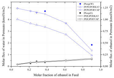 ![]() Figure 5. Permeate flow as a function of the ethanol composition in the feed