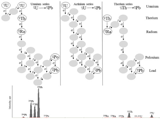 ![]() Figure 8. Natural radionuclides determine in the uranium, actinium and thorium series in water samples