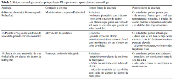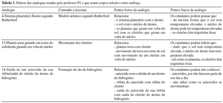 Os professores justificam as suas opiniões sobre as potencialidades das analogias no contexto do ensino de química com base em ideias aceites por especialistas da área ex.: Rodriguez & Towns; Jonane; Ferraz & Terrazzan.46-48 No entanto, no que respeita às limitações, das analogias, apenas um dos professores (P2) explicou a sua opinião, afirmando, em concordância com a literatura,49 que, se o uso das analogias não for bem planificado, elas podem conduzir a resultados indesejados, porque o aluno pode não as interpretar do modo que o professor pretendia: