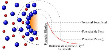 ![]() Figura 2. Representação da DCE de um coloide. Adaptado da ref. 69