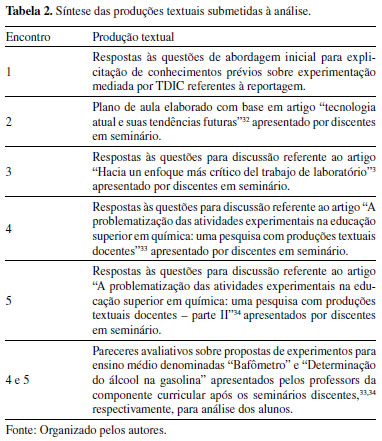 | Experimentação articulada às tecnologias digitais de informação e comunicação: problematizações de conhecimentos na formação de professores de química Experimentation related to digital information and communication technologies: problematizations of knowledges in the training of chemistry teachers |