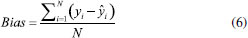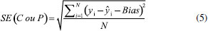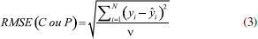 Definição e otimização de variáveis latentes O número de variáveis latentes do modelo PLS é otimizado dentro do próprio aplicativo usando a interface de acordo com a Figura 3b. Alternativamente, o aplicativo também usa a minimização do erro relativo médio na validação cruzada empregando o sistema leave-one-out conforme a interface mostrada na Figura 3c. O método de escolha do número de variáveis latentes consiste em dividir o conjunto de dados original em vários segmentos. Um deles é então separado para ser usado como teste e os demais para criar o modelo. O número de segmentos será o número total de modelos gerados, assim, todos os segmentos terão a oportunidade de servirem como calibração e, também, como teste. Esse modo de validação cruzada com um método chamado leave-one-out, que é uma condição do k-fold, é caracterizado quando a quantidade de amostras usadas para teste é igual a unidade. Cada uma validação é repetida para cada nova variável latente adicionada. Esse procedimento é necessário para verificar o poder preditivo de cada variável latente, e então parar a extração deles quando começarem a ocorrer fatores com baixo poder preditivo.30,31 No aplicativo, são necessários 3 cliques para realizar a otimização: (1) [Otimizar] -- (2) [Gráfico] -- (3) [Salvar]. Para o uso do REDGIM em cada aplicação para a determinação dos analitos, foram definidos o número de variáveis latentes igual a 2 após a otimização. Visualização dos resultados Interna (em Tela) O REDGIM apresenta os resultados em tela (Figura 3d) com permissão para zoom e interação com os resultados. Porém, é incentivado a exportação dos resultados que são intermediários para o processamento do modelo (Figura 3e). O parâmetro normalmente utilizado para avaliar a qualidade de um modelo utiliza o somatório do quadrado dos resíduos, pois desta forma, há uma comparação no valor predito e o obtido pelo modelo. Então, calcula-se o somatório dos quadrados dos erros residuais previstos PRESS (do inglês, Predicted Residual Error Sum of Squares) ou o seu valor médio, MSE (do inglês, Mean Squared Error), segundo as equações 1 e 2.32 ![]() em que: yi é o valor teórico ou de referência; ŷi é o valor previsto pelo modelo; N é o número de amostras pertencentes ao modelo. Para trabalhar nas mesmas unidades da matriz Y, calcula-se o valor de raiz quadrada do MSE, ou seja, RMSE (do inglês, Root Mean Square Error), como mostra a equação 3: ![]() em que ν é o número de graus de liberdade, que, para o cálculo do RMSEP (do inglês, Root Mean Square Error Prediction), corresponde ao número de amostras de previsão. Para o cálculo do RMSEC (do inglês, Root Mean Square Error Calibration), é obtido pelo número de amostras N, o número de fatores k segundo a Equação 4 quando os dados são centrados na média. ![]() Quando os dados se referem ao conjunto de calibração, a equação 3 é usada para obter o valor de RMSEC. Por outro lado, quando são usados os dados de previsão, é obtido o valor de RMSEP. O valor de SEC (do inglês, Standard Error Calibration) e SEP (do inglês, Standard Error Prediction) são considerados medida de precisão e são calculados usando a equação 5.22 ![]() em que o valor da Bias é calculado segundo a equação 6: ![]() A linearidade pode ser avaliada pela avaliação do coeficiente de determinação (R2), de acordo com a equação 7. Quanto mais próxima de 1, mais forte a correção será. ![]() sendo ȳ o valor médio de y. Com relação aos parâmetros químicos para a verificação do método proposto, utilizaram-se os cálculos de limite de detecção (LD) e limite de quantificação (LQ) de acordo com o guia Eurachem33 pelas equações 8 e 10, respectivamente: ![]() sendo que S0' é calculado por meio da equação 9: ![]() em que: S0: desvio padrão estimado de m resultados únicos na concentração zero ou próximo a zero; S0': desvio padrão usado para calcular o LD ou LQ; n: média da determinação da amostra ao relatar os resultados, em que cada replicação é obtida seguindo todo o procedimento de medição; nb: média dos valores do branco quando calculando a correção do branco de acordo com todo o procedimento de medição. Foram realizadas dez medidas de um único branco de calibração para obter o desvio padrão. Por outro lado, o limite de quantificação (LQ) foi calculado a partir da equação 10: ![]() sendo que S0' é calculado pela equação 9. Persistência dos resultados A imagem e a listagem das ROI's são armazenadas em um arquivo único com extensão de *.det. Esse arquivo é um compactado que contém a imagem em alta resolução e as informações das coordenadas do posicionamento das ROI's e o tamanho dos mesmos. Aplicação 1 - Determinação de cloro livre em água de torneira Reagentes e soluções Todas as soluções foram preparadas com a utilização de água deionizada. A solução padrão estoque de cloro foi obtida a partir da diluição de uma solução de hipoclorito de sódio 4 - 6% m v-1 PA (Dinâmica Química - Indaiatuba/SP). As soluções padrão de cloro foram padronizadas usando a análise volumétrica por iodometria de acordo com Vogel,34 obtendo-se a concentração de 55,63 g L-1 com uma incerteza de 0,02 g L-1 para n = 3. A solução de orto-tolidina, C14H16N2, (Bauminas Hidroazul® - Cataguases/MG) foi obtida em comércio especializado em produtos químicos para tratamento de água de piscinas. O frasco conta-gotas contém 23 mL de uma solução de orto-toluidina a 0,1% m v-1 em meio HCl (CAS 7647-01-0) a ≈ 1% m v-1. Até a concentração máxima da curva analítica (0,800 mg L-1), a quantidade de ácido presente no indicador é suficiente para deixar o pH em aproximadamente 2,4 com balão de 25 mL.35 As duas amostras de água potável foram coletadas em dois pontos do Instituto Federal de Educação, Ciência e Tecnologia do Espírito Santo (Ifes) campus Ar
