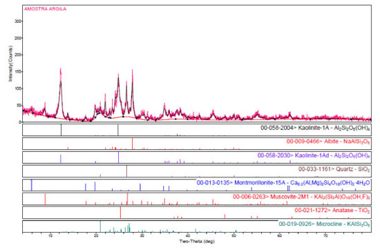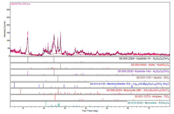 Observa-se a partir dos ensaios de difração de raios X que as amostras analisadas contêm caulinita. A caulinita é um aluminossilicato com dois planos basais de clivagem: uma folha octaédrica de alumina e uma folha tetraédrica de sílica.21 Essas folhas são ligadas por átomos de oxigênio compartilhados. Entre as camadas, as ligações são formadas por interações eletrostáticas, forças de Van der Waals e ligações de hidrogênio.22 As bordas das camadas expostas de Al e Si são terminadas por grupos hidroxilas.23 Segundo Hsua et al.,24 diferentes cargas de superfície contribuem para a carga superficial total de materiais argilosos. A contribuição para a carga total é originária de substituições isomórficas ou quebra de ligações, íons H+ ou OH- e cargas resultantes de íons adsorvidos na camada de Stern. De acordo com Brady et al.,25 a carga superficial da caulinita sofre alterações de acordo com a composição química do meio e defeitos estruturais. As faces das camadas de alumina estão sujeitas a protonação e deprotonação através da formação de íons OH2, OH- e O-2, de acordo com o pH do meio. As extremidades da camada estão sujeitas a formação dos mesmos íons por protonação, deprotonação e quebra de ligações. As extremidades das camadas de Si apresentam comportamento semelhante às extremidades das camadas de Al, apresentando alta dependência com o pH do meio. Por outro lado, as faces das camadas de sílica estão sujeitas às substituições isomórficas, adquirindo sempre carga negativa e pouca dependência com o pH do meio.26-28 A superfície da carga da caulinita é altamente dependente da relação entre o ponto isoelétrico da partícula e o pH do meio. Carty propôs que a caulinita tem superfície de carga da alumina positiva, enquanto que a sílica tem carga negativa na faixa de pH de 3,5 a 8,5, baseado no ponto isoelétrico da sílica (2,5 a 3,5) e da alumina (8,5 a 10,4).21 De modo geral, a carga total dos planos basais é sempre negativa, mas a magnitude é dependente do pH.29,30 Em valores de pH abaixo do ponto isoelétrico, o material sofre protonação; e acima do ponto isoelétrico, deprotonação (Figura 4). Quando o valor é igual ao ponto isoelétrico, existe a formação dos dois tipos de carga.31