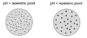 ![]() Figura 4. Comportamento das partículas de caulinita em função do pH do meio e do comportamento isoelétrico. As partículas adquirem carga negativa em pH maior que o ponto isoelétrico e positiva em pH menor que o ponto isoelétrico