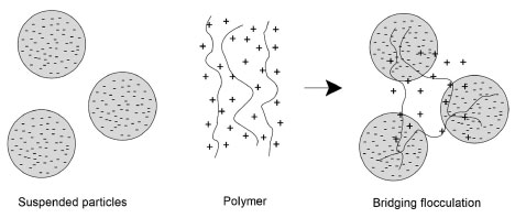 ![]() Figura 5. Mecanismo de floculação por ponteamento em pH maior que o ponto isoelétrico