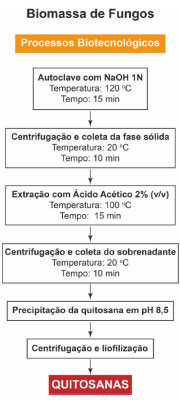 ![]() Figura 3. Processo de isolamento de quitosanas obtidas por métodos biotecnológicos