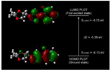 ![]() Figure 2. The HOMO, LUMO and energy gap of compound 4d, obtained by the DFT calculations
