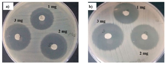 ![]() Figure 6. Inhibition zone for a) E. coli b) S. aureus