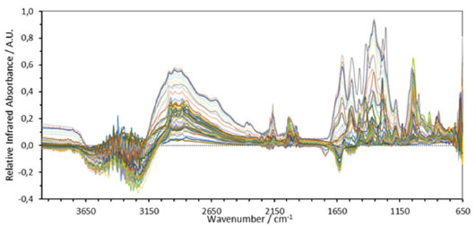 ![]() Figure 2. MIR spectra for all amines concentrations samples with subtracted water spectrum