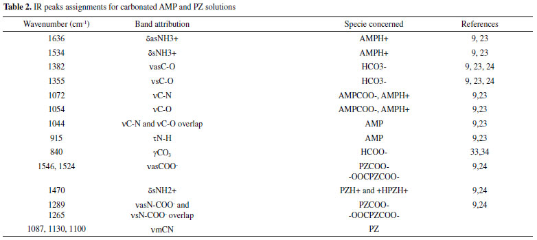 | Quantitative speciation of the liquid phase by ftir spectroscopy in the system AMP-PZ-CO2-H2O |