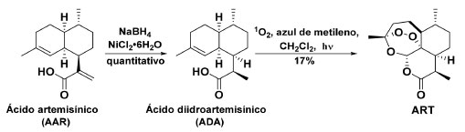 ![]() Esquema 11. Primeiro relato do uso de níquel borohidreto de sódio para redução do AAR na síntese da ART