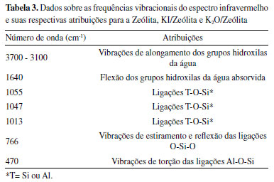 Os espectros na região do infravermelho para as amostras Zeólita, KI/Zeólita e K2O/Zeólita estão apresentados na Figura 3.