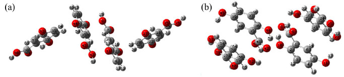 RESULTS AND DISCUSSION Experimental and theoretical simulated spectra analysis The unit cell of 4- and 5-hydroxysalicylic acid was theoretically calculated by using Gaussian 16 software combined with DFT-D3 method. One unit cell of both samples includes four molecules. Figure 4 and Figure 5 show that the unit cell structures before and after optimization for the two samples. Obviously, the molecules are closer together for the optimized structure. It can be obtained from the output file of Gaussian 16 that the total energy of the initial structure (Figure 4(a)) of 4-hydroxysalicylic acid is -2285.690 Hartree, and after geometric optimization (Figure 4(b)), the total energy of the structure is reduced to -2285.896 Hartree. Similarly, after geometric optimization, the total energy of the unit cell structure of 5-hydroxysalicylic acid decreased from -2285.674 Hartree to -2285.854 Hartree. Geometric optimization is to find the minimum point under the initial structure, and the lower the energy, the more stable the structure.