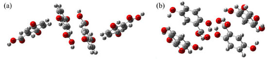 ![]() Figure 5. The unit cell structures of 5-hydroxysalicylic acid. (a) Before optimization. (b) After optimization