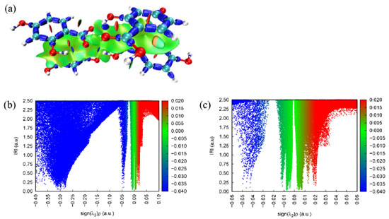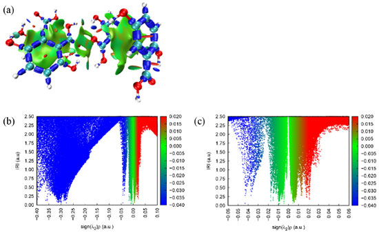 ![]() Figure 11. IRI analysis results of 5-hydroxysalicylic acid. (a) three-dimensional isosurfaces. (b) two-dimensional scatter plots, sign(λ;2)ρ from -0.4 to +0.1. (c) two-dimensional scatter plots, sign(λ;2)ρ from -0.06 to +0.06