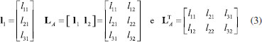 Os círculos cheios nas Figuras 1A e 1B representam algumas das amostras de um conjunto de dados contendo I amostras para o qual foram medidas três propriedades (x1, x2 e x3). A amostra i destacada na Figura 1A tem coordenadas xi1, xi2 e xi3 no espaço original, de dimensão 3. Ao fazer a análise de componentes principais, dois novos eixos, PC1 e PC2, cujas direções indicam a máxima dispersão dos dados, foram definidos gerando o subespaço A de dimensão 2, como indicado na Figura 1B. As amostras são então projetadas nesse plano e obtém-se as estrelas. As coordenadas da amostra i no plano A são os seus escores, ti1 e ti2. A distância ortogonal ao plano entre o círculo e a estrela é o resíduo que representa a informação eliminada resultante da análise de componentes principais. Ao definir o subespaço e efetuar a projeção das amostras no plano A, a dimensionalidade dos dados é reduzida de três para dois. Por esse motivo diz-se que esse é um método de projeção e também de compressão. Do ponto de vista matemático, a expressão 1 descreve uma matriz de dados X de dimensões (I×3) onde cada linha se refere a uma amostra (objeto, indivíduo). Nas colunas estão as três propriedades x1, x2 e x3, medidas. ![]() O vetor linha, xiT (()T indica a transposta de um vetor ou matriz) se refere à amostra i e seus elementos são os valores das três propriedades xi1, xi2 e xi3 medidas para descrever essa amostra (veja Figura 1A). Cada vetor coluna xj se refere a uma variável, ou seja, a uma medida realizada para todas as amostras. A análise de componentes principais resulta de uma transformação linear na matriz X representada pela expressão 2 ![]() em que T, L e E são as matrizes de escores, pesos e resíduos, respectivamente, e A é a dimensão do subespaço, i.e., o número de componentes principais retidas na decomposição de X, que no caso da Figura 1B é igual a 2. L é a matriz de pesos, cujos elementos indicam o quanto cada variável original contribuiu para gerar as PC (o novo sistema de eixos). Por exemplo, a variável x1 contribuiu com l11, a variável x2 com l21 e x3 com l31 para formar a primeira componente principal. O vetor de pesos da primeira componente principal e a matriz de pesos para as duas PC estão indicados a seguir (expressão 3). ![]() A matriz T contém os escores, i. e., as coordenadas das amostras no novo sistema de eixos. Associando à Figura 1B, ti é o vetor de escores da amostra i, que tem dois elementos: tiT = [ti1 ti2], um na primeira e outro na segunda componente principal. A matriz de resíduos, E, é constituída de vetores linha (que para a amostra i é um vetor com três coordenadas, eiT = [ei1 ei2 ei3]) ortogonais ao subespaço A e contém toda a informação que foi considerada como sendo irrelevante. A matriz de resíduos é nula quando não há compressão dos dados, i. e., quando A = 3. Considerando ainda os dados da expressão 1, o procedimento de obtenção das PC também pode ser representado pelo Esquema 1 em que todas as matrizes indicadas têm dimensões (I×3). A matriz X foi decomposta em três matrizes, cada uma sendo o produto de dois vetores, t 1 l 1 T , t l 2 e t 3 l 3 T . As informações descritas em PC1 "não se misturam", i. e., não se correlacionam com as de PC2, PC3 e assim por diante. A informação relevante dos dados está nas duas primeiras componentes principais, X ^ A , que é a matriz de dados reconstruída com apenas essas duas PC. A terceira componente principal descreve os resíduos.