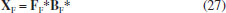 ![]() Figura 14. Matriz de planejamento F para o cálculo da média e dos dois fatores, F1 da temperatura com três níveis e F2 do tempo com 13 níveis
