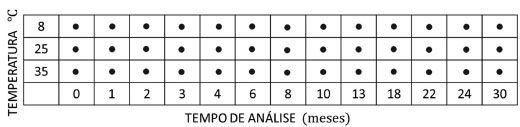 ![]() Figura 13. Planejamento proposto para o estudo dos efeitos da temperatura e do tempo em polpas de tomate. O símbolo ● indica as avaliações químicas e sensoriais feitas no produto acondicionado em uma dada temperatura nos tempos predefinidos