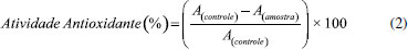 Síntese do biodiesel Uma solução metanólica de hidróxido de potássio (KOH) foi preparada através da dissolução de 1,5 g de hidróxido de potássio em 35 mL de metanol com o auxílio de agitação e controle de temperatura. Em um balão de fundo chato (500 mL) foi adicionado 100 mL de óleo de soja, aquecido em banho-maria e sob agitação, com auxílio de uma barra magnética, até atingir a temperatura de 45 ºC. Em seguida, adicionou-se a solução de metóxido de potássio ao óleo pré-aquecido e esta mistura reacional permaneceu 60 min a 45 ºC com agitação constante. Em seguida, a mistura reacional foi transferida para um funil de separação de líquidos, em que foi mantida por 1 hora. A fase inferior (glicerina) foi separada do biodiesel. O volume do biodiesel foi medido com auxílio de uma proveta e iniciou-se a etapa de lavagem: 1) 30 mL de solução aquosa de ácido clorídrico a 0,5% (v/v); 2) 30 mL de solução saturada de cloreto de sódio; 3) 30 mL de água destilada.27 Teste de oxidação do biodiesel mediado por cobre e ferro Em uma placa de petri de 100 mm foi adicionado 40 g de biodiesel e 4 g do metal em pó a ser estudado. A placa foi trasferida para a estufa, com temperatura de 125 ± 5 ºC. Para análise do potencial antioxidante dos salicilatos, eles foram adicionados ao biodiesel na concentração de 1000 mg L-1. O acompanhamento da oxidação do biodiesel foi realizado pela determinação do índice de acidez, uma vez que o aumento da acidez está diretamente relacionada à degradação do biodiesel. As análises foram realizadas nos tempos de 0, 2, 4, 6 e 8 horas.28 Determinação do índice de acidez (I.A.) Pesou-se aproximadamente 1g da amostra de biodiesel em um erlenmeyer de 125 mL, e adicionaram-se 12,5 mL de uma solução de éter etílico e etanol (2:1, v/v). Em seguida, foram adicionadas duas gotas do indicador fenolftaleína e titulada com uma solução de KOH (0,05 mol L-1), até o aparecimento da coloração rósea.29 Análise de ressonância magnética nuclear (RMN) Os salicilatos foram caracterizados por espectroscopia de RMN em um aparelho da marca Bruker modelos DPX 400, operando a 400 MHz para 1H e 100 MHz para 13C. Para tanto, as amostras foram dissolvidas em clorofórmio deuterado (CDCl3) e utilizou-se tetrametilsilano (TMS) como padrão interno. Essas análises foram realizadas na Universidade Federal de Santa Maria (UFSM). Os dados espectrais foram descritos da seguinte forma: a) 1H RMN - deslocamento químico (δ), multiplicidade, constante de acoplamento (J) em Hertz e integral da área de cada sinal. b) 13C RMN - os deslocamentos químicos são descritos em ppm, utilizando como referência o pico do CDCl3 em 77 ppm.30 Atividade Antioxidante via captura do radical DPPH O método baseia-se na transferência de elétrons em que, por ação de um antioxidante (AH) o 2,2-difenil-1-picrilhidrazil (DPPH), que possui cor púrpura, é reduzido formando difenil-picril-hidrazina (DPPH-H), de coloração amarela, com consequente desaparecimento da absorbância no comprimento de onda de 515 nm. Foram preparadas soluções de 1000 mg L-1 para cada um dos salicilatos sintetizados dissolvidos em etanol e uma solução etanólica de DPPH 0,1 mmol L-1 que foi posteriormente diluída por um fator de 5. Para as determinações adicionou-se a cada 0,3 mL de amostra 2,7 mL da solução de DPPH (Aamostra), exceto nas amostras controle, em que foi adicionado o solvente etanol. Para a absorbância do controle o procedimento foi repetido, porém, ao invés da amostra foram utilizados 0,3 mL do solvente utilizado na preparação da amostra (Acontrole). Após a adição do DPPH, esperaram-se 40 minutos e procedeu-se a leitura no espectrofotômetro a 515 nm.31 A partir dos resultados obtidos determinou-se o percentual de captura do radical livre. A capacidade de eliminar o radical DPPH (% de atividade antioxidante) foi calculada utilizando a equação 2: ![]() em que: A(controle) = absorbância da solução de DPPH sem a amostra; A(amostra) = absorbância da amostra com o DPPH. Análise estatística Como critério de seleção para os resultados de índice de acidez e captura do radical livre DPPH dos salicilatos, foi utilizado o teste t com nível de confiança de 95% realizado no programa Assistat.