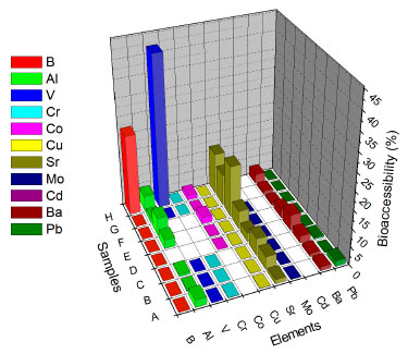 ![]() Figure 2. 3D chart illustration the bioaccessible elements (%) in the analyzed samples (A to H)