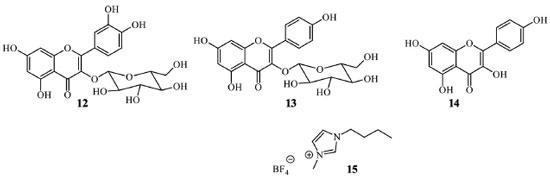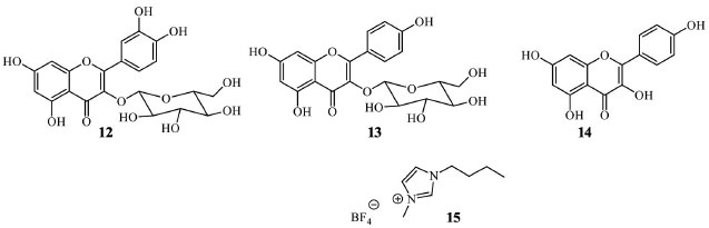 ![]() Figure 6. Flavonoids extracted by ionic liquid from the leaves and flowers of Lysimachia clethroides using [Bmim]BF4 (15)
