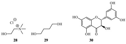 ![]() Figure 10. Choline chloride (28), 1,4-butanodiol (29), and 3,3',5,5',7-pentahydroflavanone (30) structures