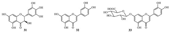 ![]() Figure 11. Structures of dihydromyricetin (31), luteolin (32), and luteolin-7-O-β-D-glucuronide (33)
