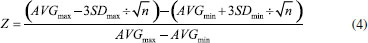 The experiments were performed in a 96-well plate. The solution with varying concentrations of acarbose was placed in 32 wells in three different plates. In each plate, the location of each solution was changed with respect to its column or row of wells. For each experiment, fresh and independent reagents were used, and the evaluation was performed on three different days. The % RSD was calculated for each solution. The Z factor was computed for each plate (Equation 4). ![]() where "AVGmax" is the average of the maximum absorbance values, "SDmax" is the standard deviation of the maximum absorbance values, "AVGmin" is the average of the minimum absorbance values, "SDmin" is the standard deviation of the minimum absorbance values, "n" is the number of tests performed. Statistical analysis Minitab 17 (Minitab, Inc., USA) was used for data analysis. Kolmogorov-Smirnov and Tukey tests were performed, and P < 0.05 was considered significant. Statistical analysis and validation were performed using Microsoft Excel 2010. Application Five plant extracts were used to determine α-amylase inhibitory activity using the proposed method. The plant extract solutions were in the concentration range of 6 µg mL-1 to 200 µg mL-1. The optimized and validated method was very carefully followed. One milligram of each extract was weighed and dissolved in 1 mL of phosphate buffer (100 mmol L-1, pH 6.9); some solutions were sonicated to achieve complete dissolution. To each tube, 100 µL of plant extracts with different concentrations (final concentration 6 µg mL-1 to 200 µg mL-1) and 100 µL of α-amylase (final concentration 0.15 U mL-1 in phosphate buffer) were added and incubated at 37 °C for 7.2 min. Then, 100 µL of starch was added (final concentration 0.38 mg mL-1) and incubated at 37 °C for 5.5 min. The enzymatic reaction was stopped by adding 200 µL of DNS (final concentration 19.2 mmol L-1) and subsequently placed in a boiling water bath for 15.6 min. Tubes were cooled, and 100 µL of the mixture was transferred to a 96-well plate and diluted with 100 µL of water. Absorbance was recorded at 540 nm using a microplate reader. In all cases, a sample blank was analyzed to demonstrate that there were no matrix interferences caused by the extract.
