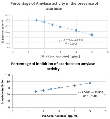 ![]() Figure 3. Inhibition percentage of α-amylase by acarbose