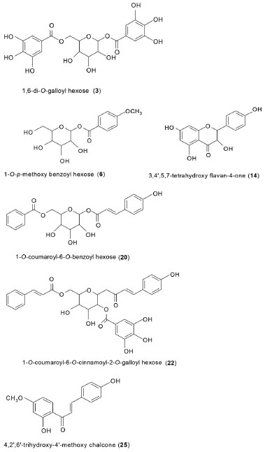 ![]() Figure 1. Proposed structures for constituents 3, 6, 14, 20, 22 and 25 detected in geopropolis from Melipona subnitida