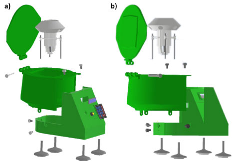 ![]() Figure 3. a) Pieces that conform to the frame PLA and b) lateral-back view of the PLA frame assembled to the centrifuge