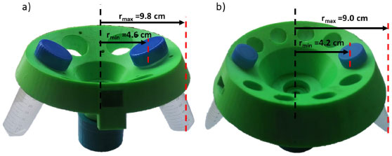 ![]() Figure 4. 3D-printed rotors for: a) 50 mL tubes (R50) and b) 15 mL tubes (R15)