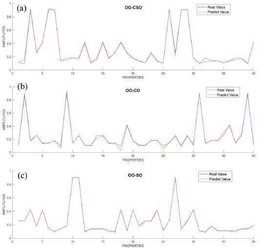 Blue lines on the graphics represent actual values, whereas red lines represent estimated regression values. Comparison of the results revealed that the graphics overlapped, and the error rates were found to be 0.005 for OO-CSO, 0.002 for OO-CO and 0.005 for OO-SO. Then, a final comparison was performed of all groups (Figure 5).