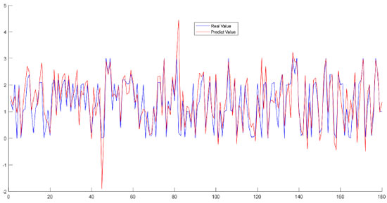 The features were evaluated in order to identify the differences with regard to the mixtures added to the adulterated OO, and it was observed that the most distinctive feature for OO-CSO and OO-SO adulterated oil was linoleic acid, while it was linolenic acid for OO-CO adulterated oil. Following the regression applied to the data sets consisting of mixtures OO-CSO, OO-CO and OO-SO, the data set was separated in order to be used in the 60% training and 40% testing stages; the results obtained were converted into graphics and are shown in Figure 4.